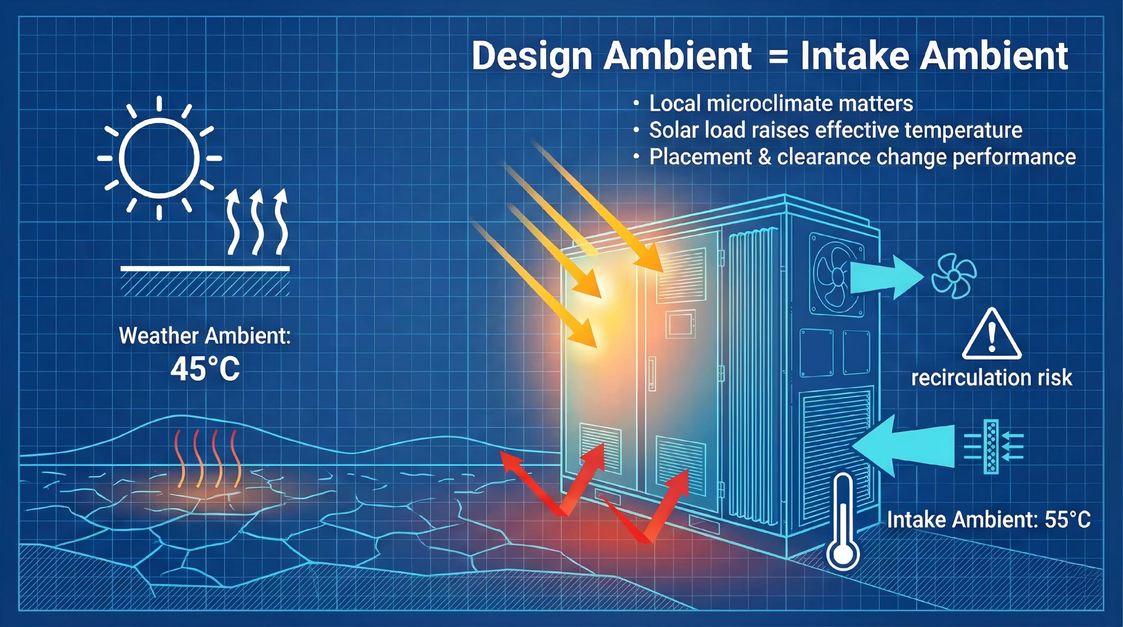 1) Define “design ambient” correctly: intake ambient, not weather ambient